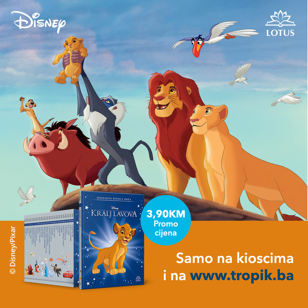Prva slikovnica iz kolekcije Disneyjeva riznica priča – Kralj lavova – je u prodaji od 02. oktobra po promotivnoj cijeni od 3,90KM, dok će sve ostale biti dostupne po iznimno povoljnoj cijeni za samo 9,90KM. Knjige će se prodavati na kioscima i prodajnim mjestima štampe u Federaciji BiH, a svaki četvrtak djeca će moći uživati u novoj priči. Knjige će se, također, moći pronaći u radnjama Tropik Gifts and Games, kao i na web shopu www.tropik.ba.