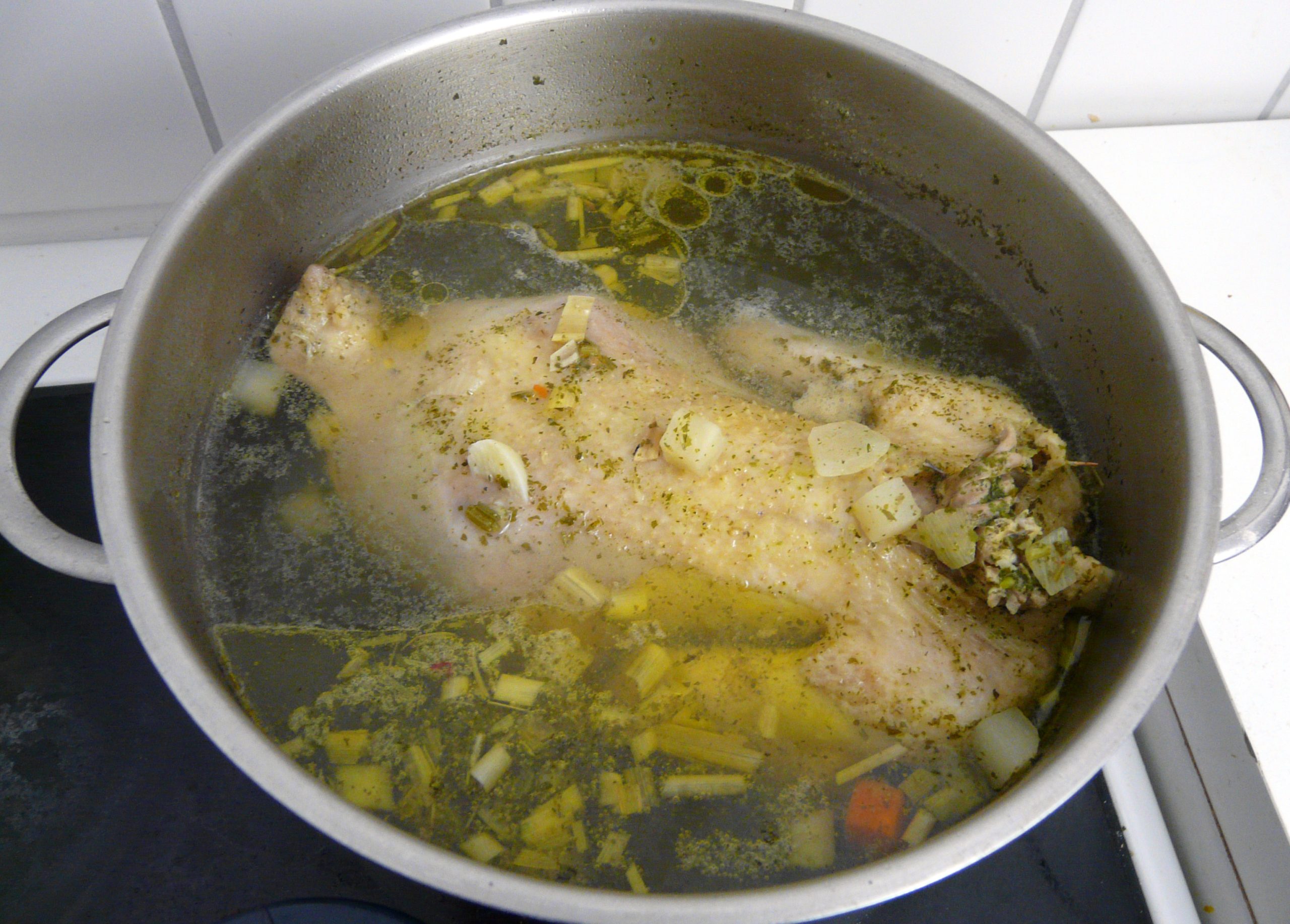 Preporučujemo da stavite dosta komada pileta ili cijelo pile u vodu i nakon toga dodate mrkvu, celer, korjenasto povrće po želji, začine i na kraju kada je supa gotova peršun. Piletina kada se skuha izvadite je, odstranite kosti i isjeckajte na sitne komadiće i vratite u supu.