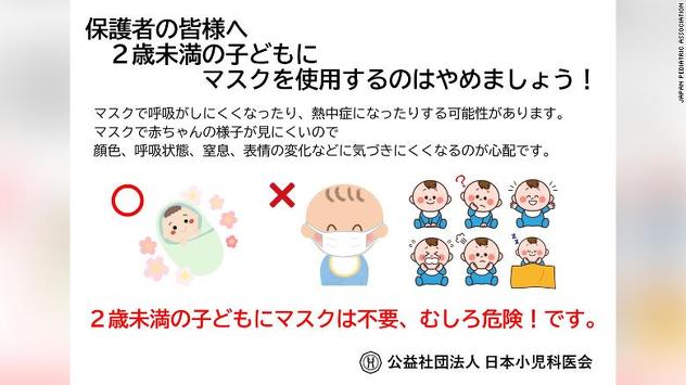 “Maske kod dojenčadi povećavaju rizik od toplotnog udara”, piše u letku Asocijacije pedijatara Japana, prenosi CNN.